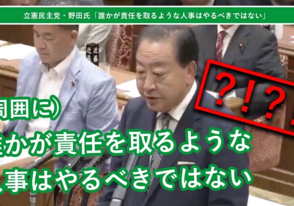 いつまで経っても“責任”ということから逃げ続ける立憲民主党の野田さん。野党第一党を率いていながら、内閣不信任決議案に消極的な姿勢...