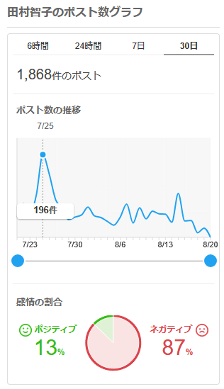 Yahooのリアルタイム分析による『共産党』『田村智子』の検索結果でネガティブ評価が圧倒的になっていた!約9割がネガティブ!!