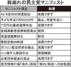 蓮舫さんは悪夢の民主党政権の存在を忘れたのか。悪夢の民主党政権が掲げたマニフェストの行方について、2012年だが、公明党が次のような表をホームページに掲載している。