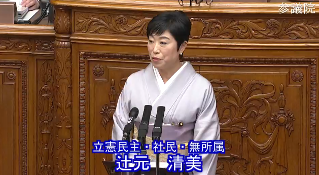 永年在職議員表彰で登壇した立憲民主党の辻元さん。お祝いしたい気持ちはあるが、驚き呆れる認識を披露した。