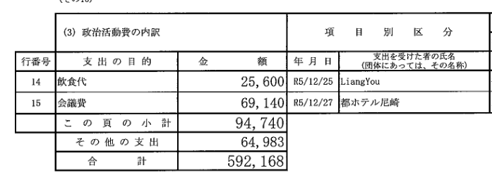 今回紹介するのは、中野洋昌衆議院議員だ。まずは、令和5年の彼自身が代表の中野洋昌政経懇話会の政治資金収支報告書である。
