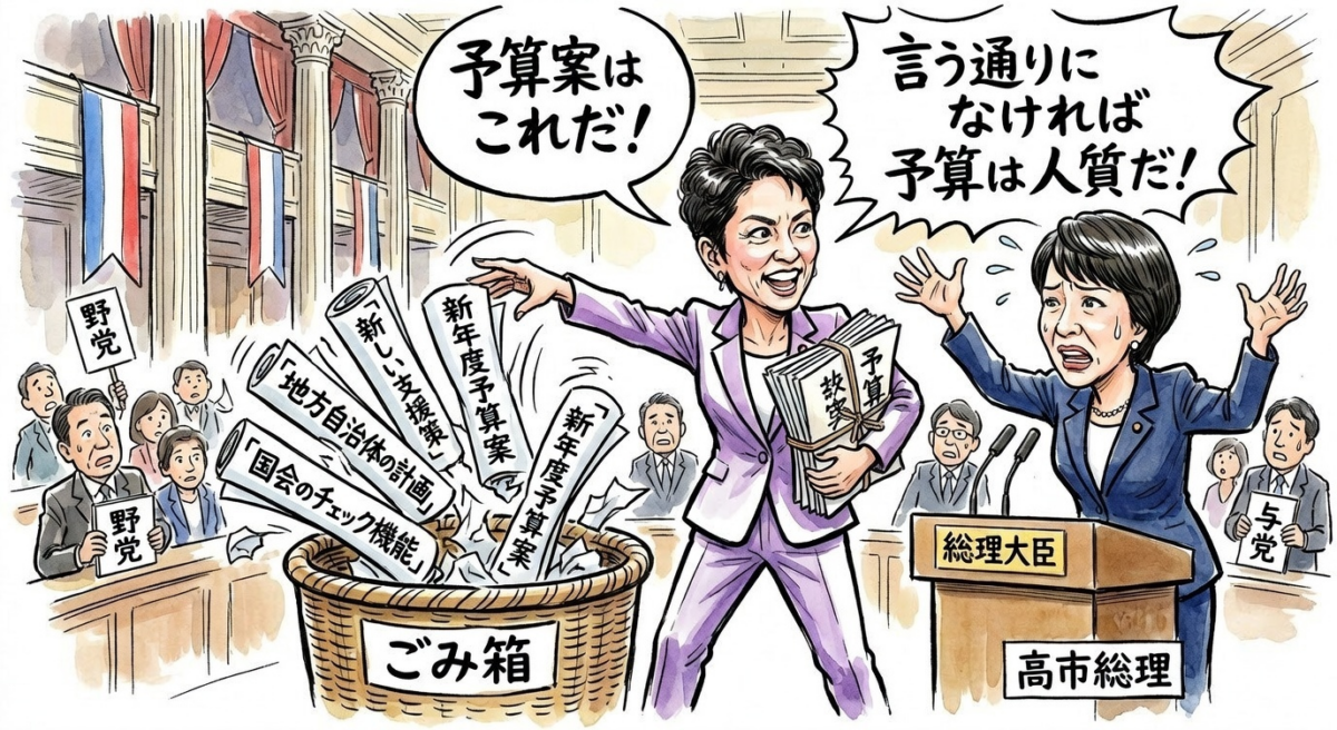 先の衆院選で圧倒的な民意を受けて高市政権が進める予算案を妨害しようと言うのだ。国民生活を救う為の予算を人質にするとは、恐れ入る!