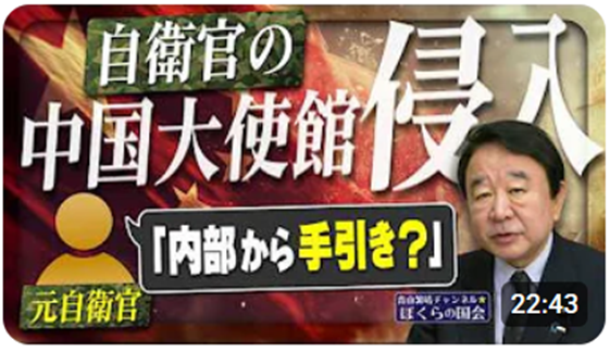 現職の陸上自衛隊幹部が中国大使館に殴り込みをかけたのだ。青山繁晴参議院議員によれば、中国大使館が手引きした説もあると言う。