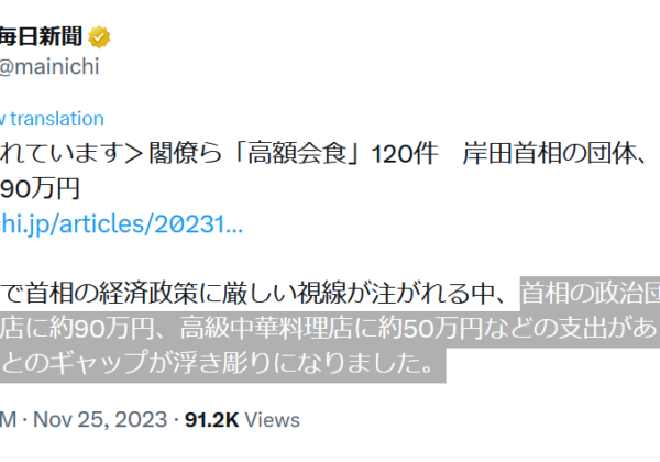 無茶苦茶だ! 毎日新聞が高市総理が会食もせず引きこもりだと叩いている! しかし、だ。この毎日新聞は、安倍総理や岸田首相に対し、高...